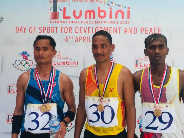 लुम्बिनी । लुम्बिनीमा अन्तर्राष्ट्रिय पिस म्याराथन प्रतियोगिता सम्पन्न भएको छ । अन्तर्राष्ट्रिय खेलकूद दिवसको अवसर पारी शान्तिको कामना गर्दै विहिबार पहिलो पटक लुम्बिनी प्रदेश खेलकूद परिषद् र नेपाल ओलम्पिक कमिटीको संयुक्त आयोजनामा अन्तर्राष्ट्रिय पीस म्याराथन लुम्बिनीमा सम्पन्न भएको हो ।