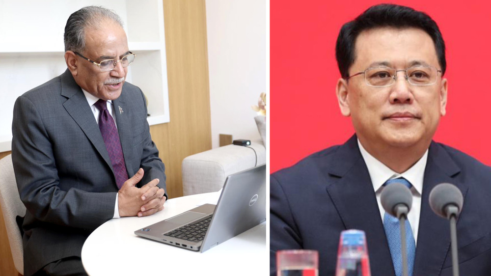 इटालीमा रहेका प्रधानमन्त्री प्रचण्ड र काठमाडौंमा रहेका चिनियाँ नेता युआन च्या चुनबीच भर्चुअल संवाद