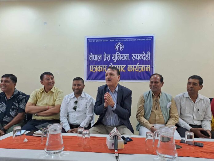नेपाल प्रेस युनियन रूपन्देहीका अध्यक्ष कबिन्द्र नेपालको सभापतित्वमा सम्पन्न कार्यक्रम सचिव कपिल ज्ञवालीको सञ्चालनमा भएको थियो ।