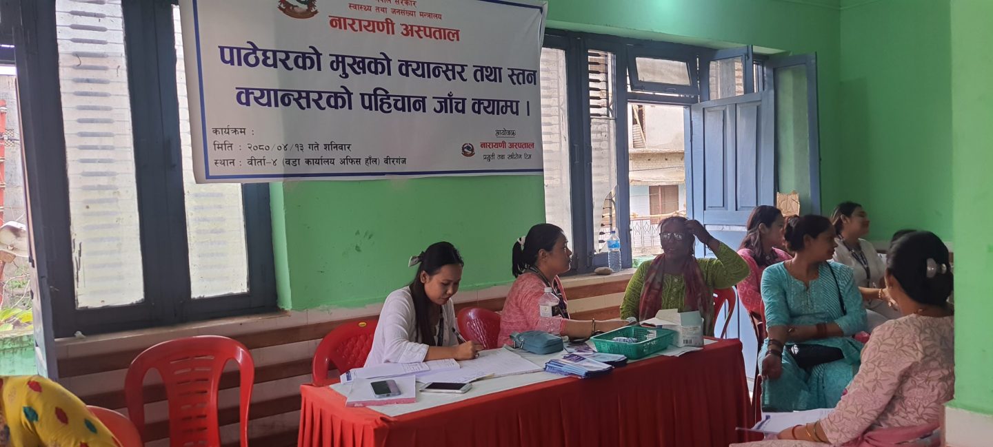 वीरगञ्जस्थित नारायणी अस्पतालको सहयोगमा आयोजित निशुल्क स्वास्थ्य शिविरमा ७४ जना महिलाले चेकजाच गराएका छन् ।