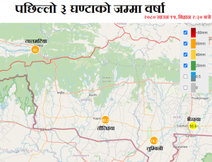 कोशी, मधेस, बाग्मती, गण्डकी, लुम्बिनी र सुदूपश्चिम प्रदेशका एकरदुई ठाउँमा मेघगर्जन र चट्याङसहित ठूलो वर्षाको अनुमान गरिएको छ ।